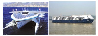 a) "Planet Solar" solar yacht b) "Anji 204" inland ro-ro ship